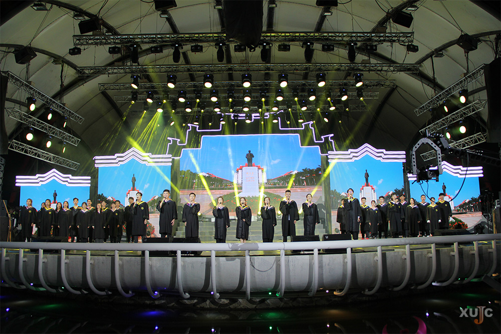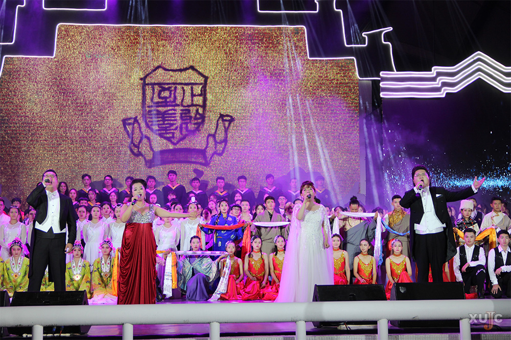 第三篇章:同心铸“嘉”梦。歌曲串烧《我的大学》将流行和经典相结合,校友、在校“嘉”人一同歌唱美丽“嘉园”。“鸿雁,向苍天,天空有多遥远。”艺术团的同学化为优美《鸿雁》,用舞蹈表现自己的远大志向和对“嘉园”越办越好的祝福。歌曲《Never Lose Your Way 》激励所有“嘉”人要坚持自我,活出态度,在大学生活中坚定脚步,勇敢追梦。最后,在诗朗诵《嘉庚学院,你好》,歌曲《不忘初心》中,整场晚会落下了帷幕。