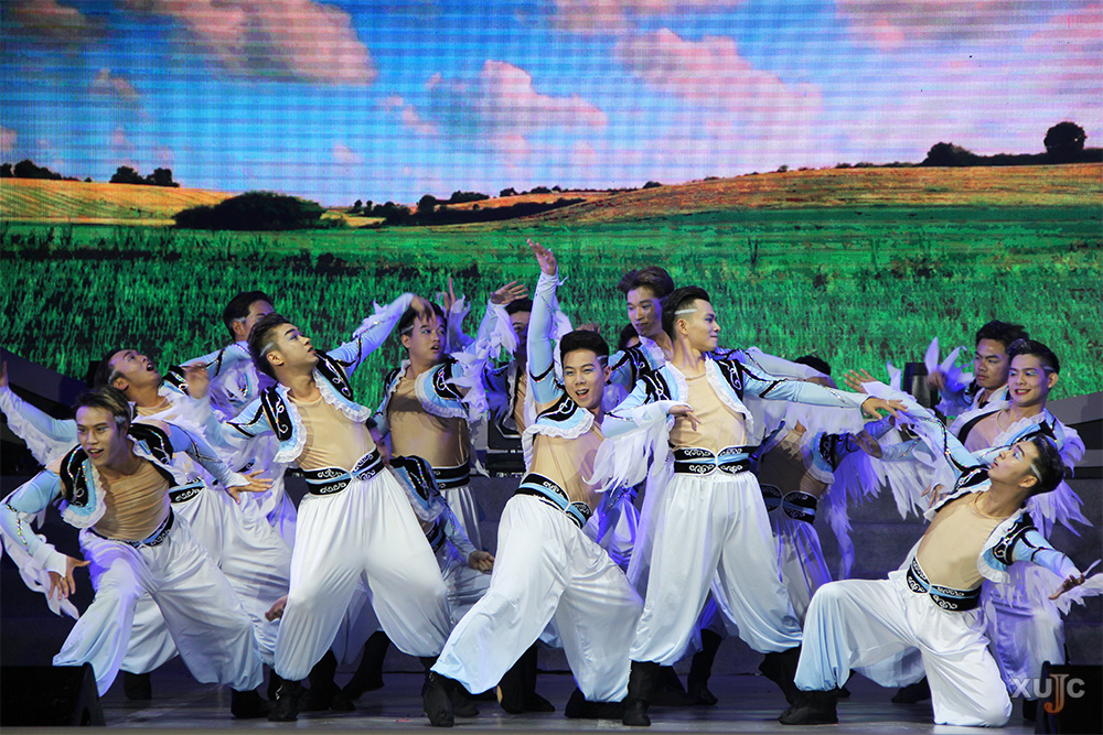第二篇章:四海聚“嘉”人。由学生、教师、职工等不同岗位的“嘉”人参加的歌舞《相亲相爱一“嘉”人》,展示了一幅“嘉”人在“嘉园”携手共进的美好画面。舞蹈《百花争妍》像丝绸画卷般光彩夺目,音乐系的舞者们用优雅的神韵,穿过季节,跨越古今,将嘉庚学院的春天搬上了舞台,也展示了“嘉园”的包容气魄。藏族学子为“嘉”园带来了一首《大山走出的孩子》,用特别的方式表现对“嘉园”的爱。《School Days in TKKC》用充满激情的舞蹈描绘了“嘉”人在学校的活力生活,彰显青春之美,将整场晚会的气氛推向了制高点。