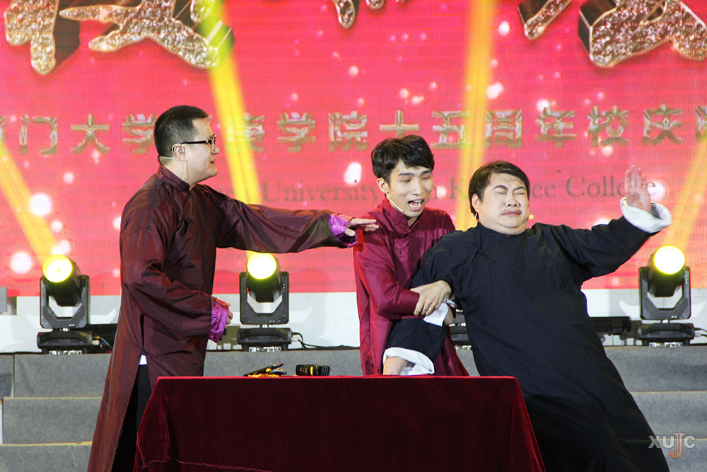第一篇章:十五有“嘉”辰。歌舞《节日欢歌》,用华丽炫目的国标舞和美妙活力的歌声,营造了一片欣欣向荣的氛围,为“嘉园”献上了一首发自内心的赞歌。音乐系学子用合唱的方式,表达自己对“嘉园”的热爱,表明作为嘉庚学子应该肩负的使命。《嘉庚学子之歌》将学子的心声体现得淋漓尽致。舞蹈《海风》为晚会注入清凉的气息。大学生艺术团的同学以优美的姿态,为我们讲述了发生在厦门湾南岸的动人故事。由校友和在校“嘉”人带来的相声《我要上校庆》,诙谐幽默,令人捧腹,言语之间透着一股身为嘉庚学子的骄傲和自豪,也表达了嘉庚学子爱母校的心情。