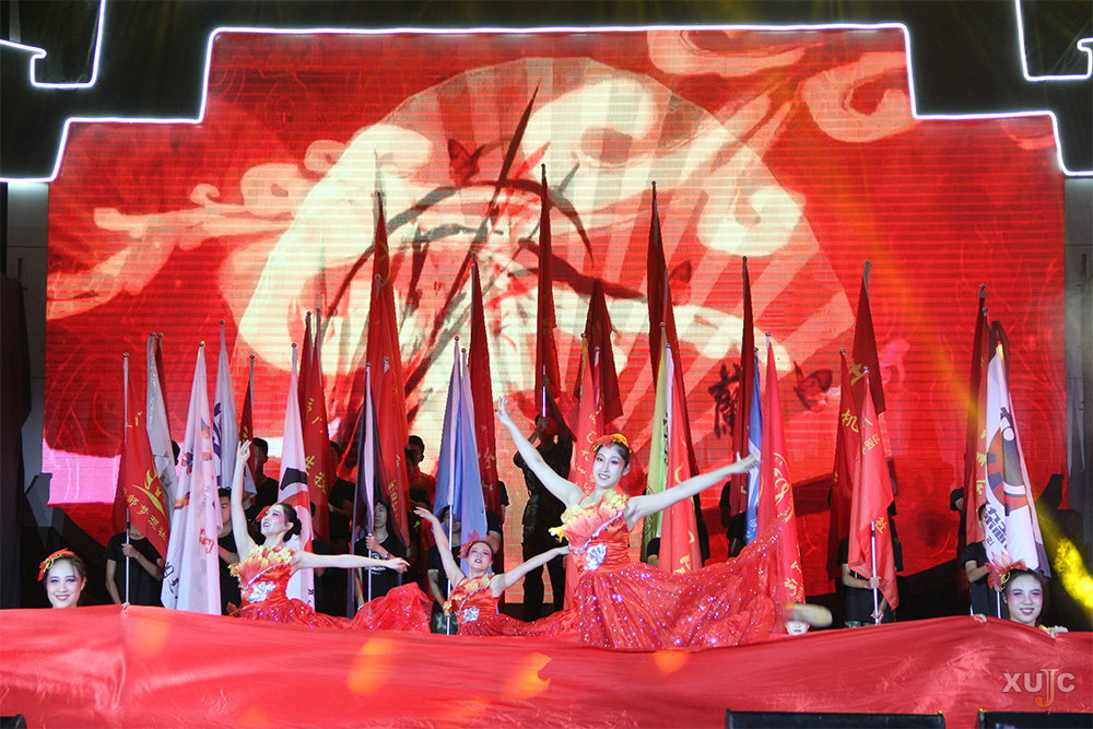 由音乐系、大学生艺术团、国旗护卫队、武术队带来的《“嘉”人贺“嘉”节》,,以铿锵有力的鼓声,势如破竹的武术动作,拉开了晚会的序幕。