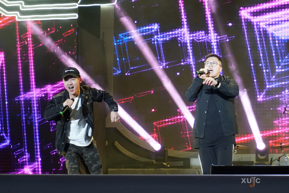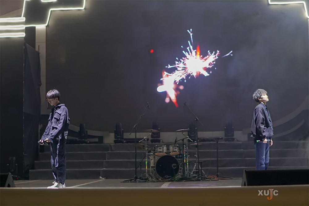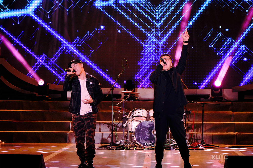 2015级人文与传播学院学子李士瑜和校友王国涛合作,带来了一首点燃全场的Rap《Don’t Stop》。这次上台,对这位准毕业生触动很大。他说:“为了展现更好的舞台效果,大家都在努力着。就像歌名《Don’t Stop》,未来我们也要不停地努力。我希望,毕业后还能回来参加校友歌会。”