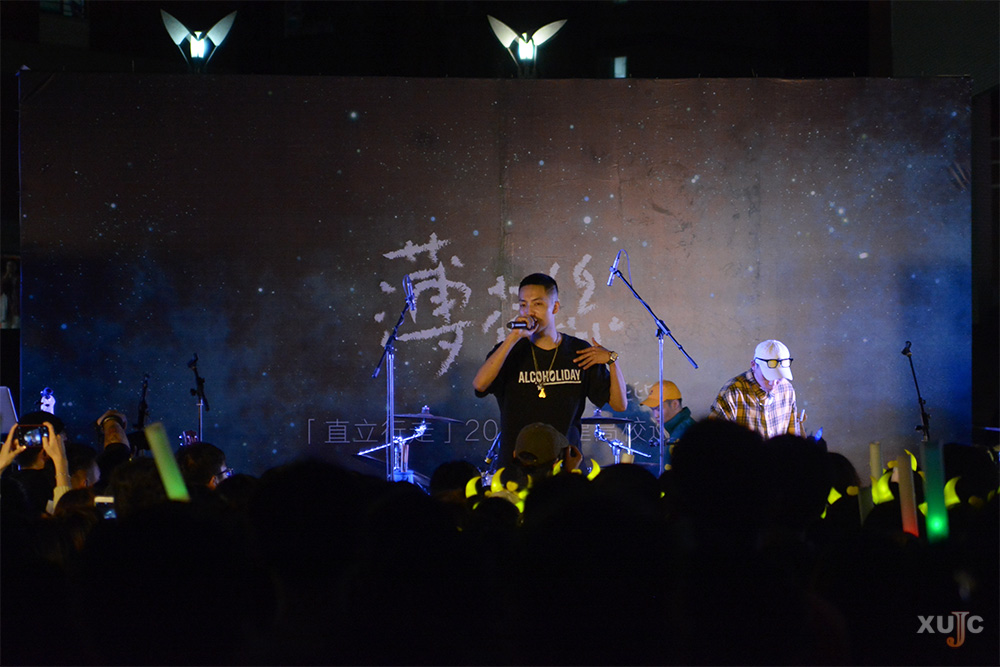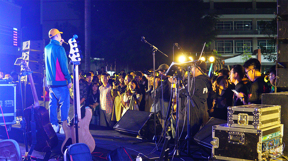 在薄荷绿乐队出场之前,我校校友说唱歌手42(艺名)、嘉坤作为嘉宾带来了暖场表演。四首不同风格的Rap《Kill It》《Sugar》《天黑黑》《All for Love》点燃了现场的氛围。