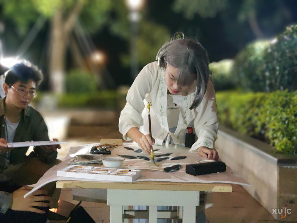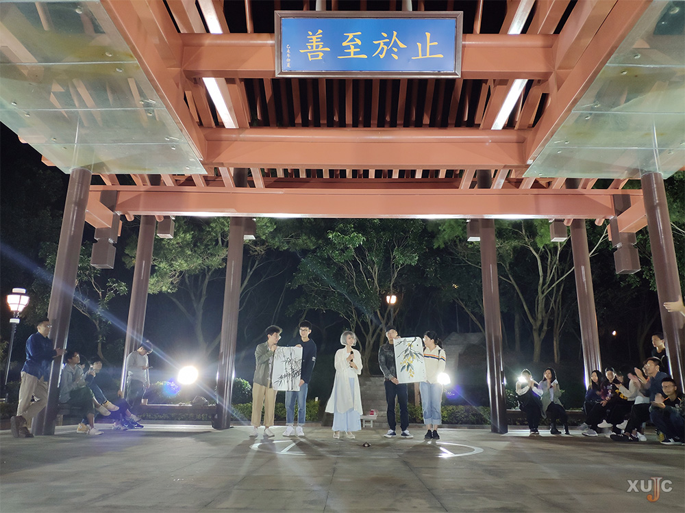 “至善雅集”一共分为雅乐、诗颂、书画才艺三个主要部分。每个部分分别以“时间——月夜之中”“地点——山巅之亭”“人物活动——雅集”为主题进行艺术表达。其中穿插“飞花令”等小的诗词接龙游戏。活动形式多样、内容丰富有趣,吸引了不少有兴趣的师生前来参加。
